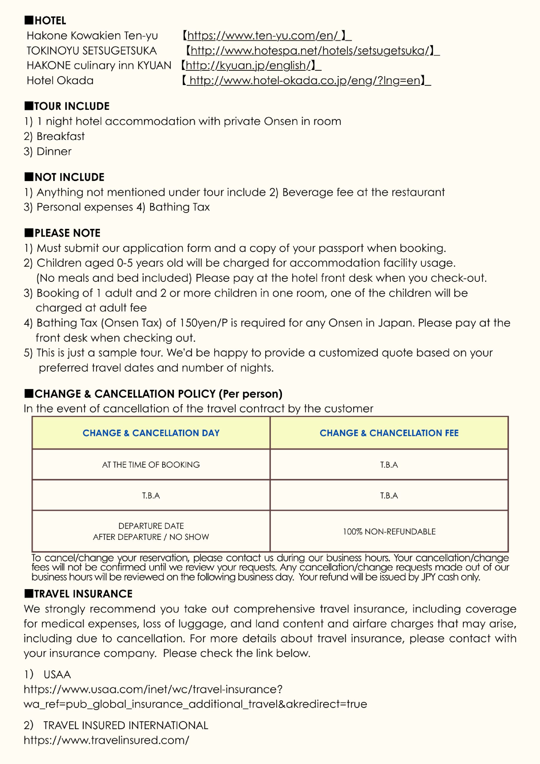 Breathe in Hakone お問い合わせInquiry Form Last Name※ First Name※ Middle Name※ Please enter your name exactly as it appears on your passport. F M Emailメールアドレス※ Email(confirmation)メールアドレス(確認)※ Telephonenumber電話番号※ Type of Trip1旅行形態1 Japan Domestic International Type of Trip2旅行形態2 Tickets Air fare Package deal Others # of people人数 Adult Children Children age(AGE , , , , ) *If more than that, please enter in the Remarks field. Depart from出発地 Destination (s)目的地 Travel Date出発日 Return Date帰宅日 Budget希望予算 Yes No USD Per Person Preferred Airlines/Trains希望航空会社/列車/交通手段 Remarks(Max.500 Letters)備考欄 (最大500文字) ※ Privacy Policy The personal information you provide will only be used to respond to your inquiry. Please contact us if you wish to disclose, correct, or discontinue the use of your personal information. I agree to the terms of the Privacy Policy confirm