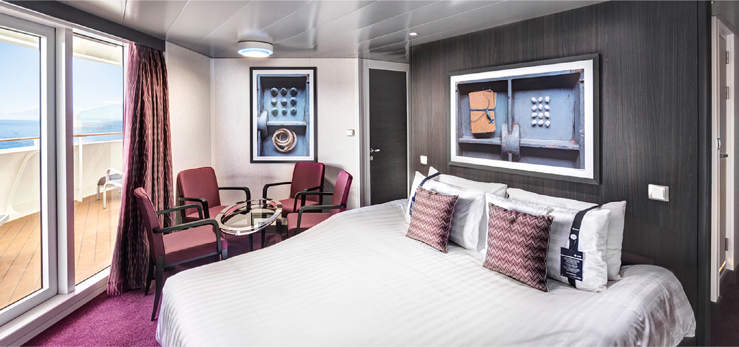 Cabin with a spacious capacity of 6 people, there are also cabins with spacious balconies and Jacuzzis. These rooms are available for those who choose the Aurea Experience.