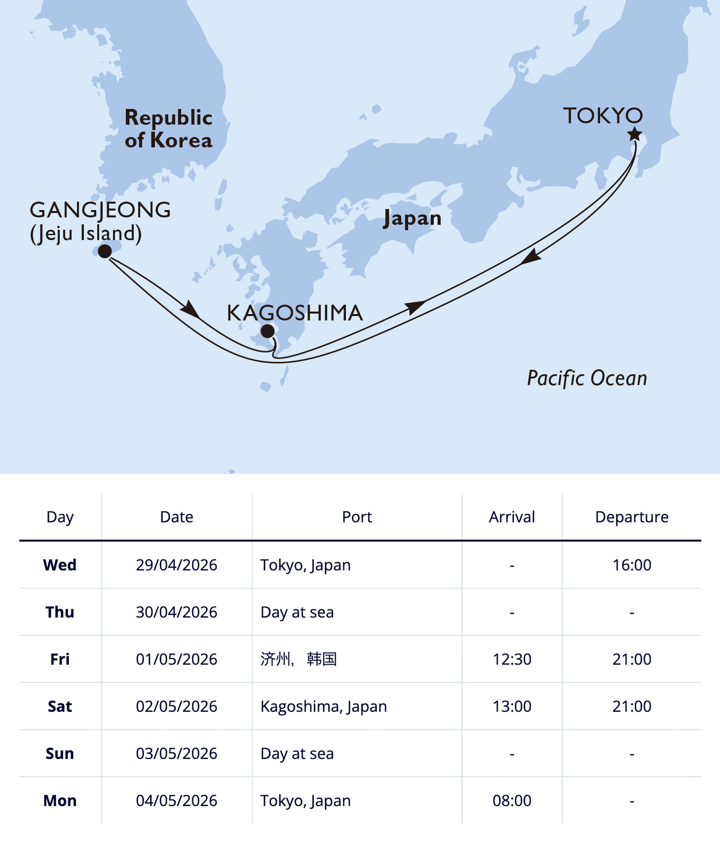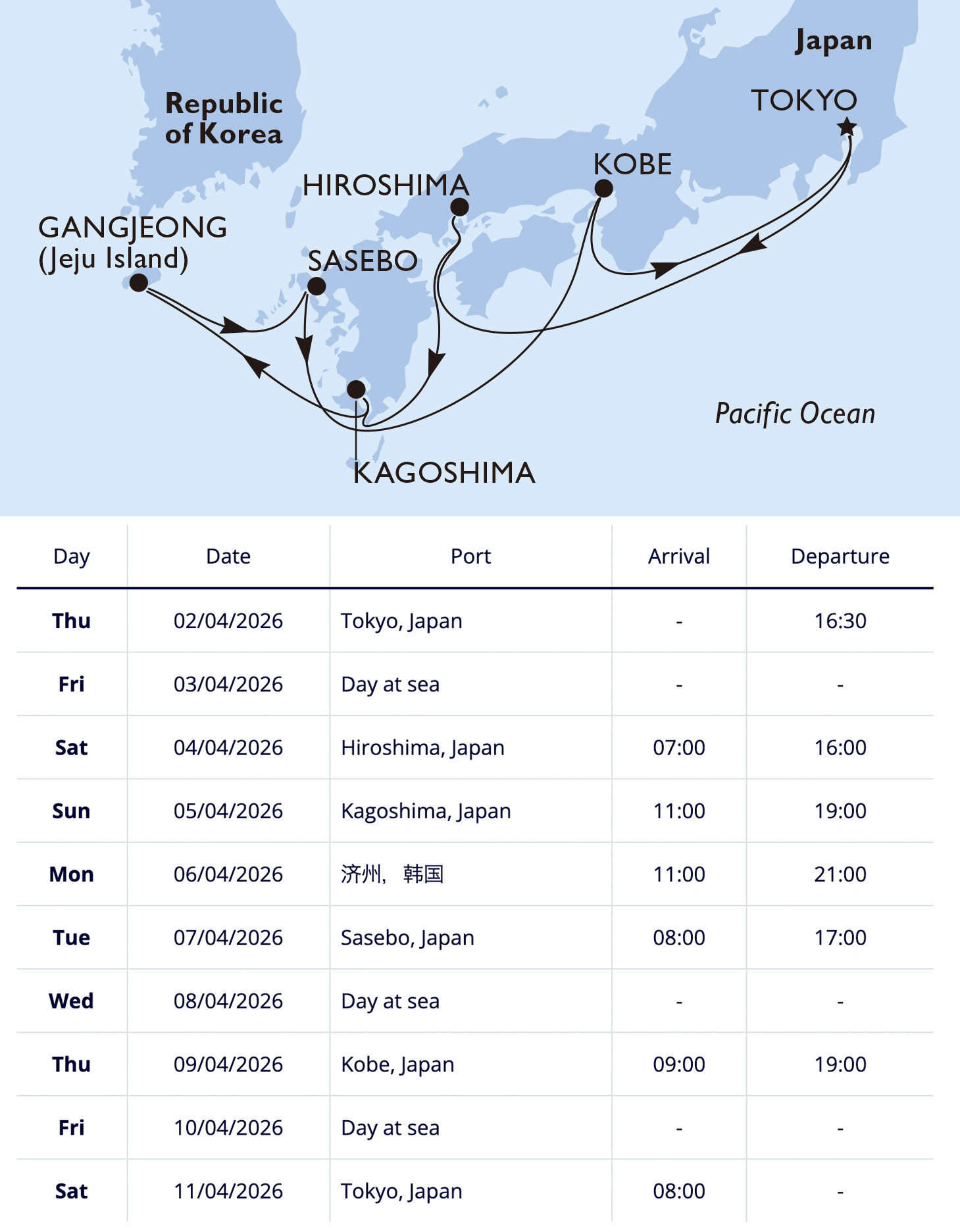 Port of departure Tokyo, Japan